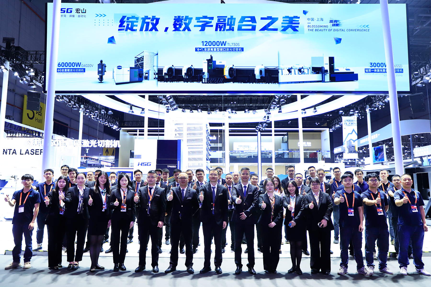 作為國內激光行業代表品牌,宏山激光已連續多年上海工博會。本次展會,宏山激光展臺特設3大區域為觀眾展示了一系列各具亮點的旗艦型產品。其中,以領航款“4+1”全游離重型坡口激光切管機TL730S、領航款6G全直驅激光切割機G4020V,以及旗艦款鉆攻一體激光復合切管機TP65SD為代表的三款產品,以其跨越邊界、重構創新的技術與產品力,向在場的眾多行業專家和觀眾展生動展示了“激光+”時代的豐富內核,成為全場焦點。